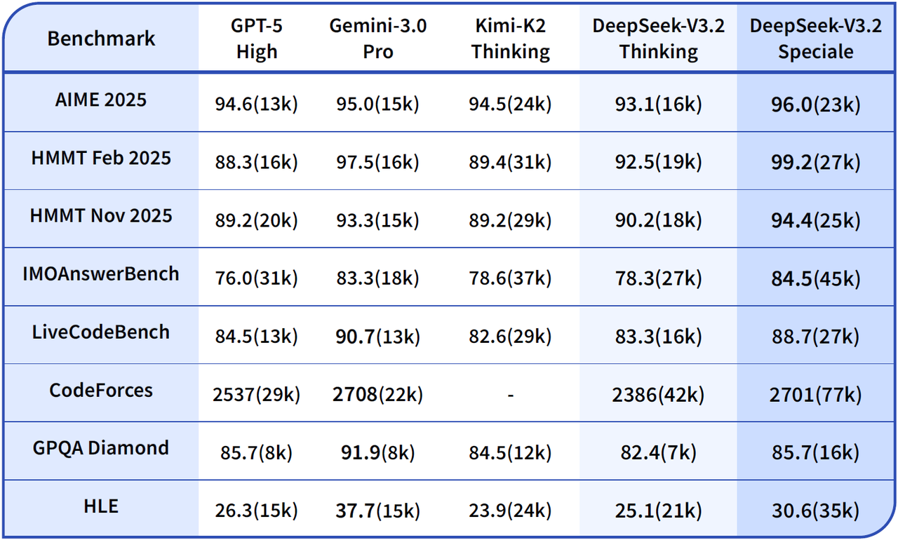 πΉ V3.2-Speciale: Maxed-out reasoning capabilities. Rivals Gemini-3.0-Pro.